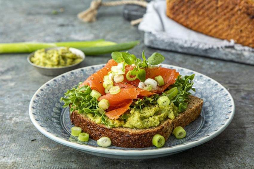 Topp skiven med avokado og laks eller ørret, så får du en smakfull og god brødskivekombinasjon.