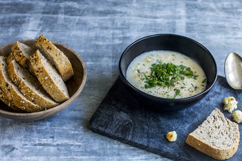 Grovbrød og blomkålsuppe