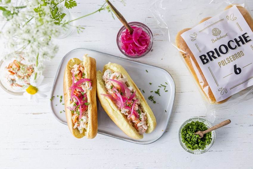 Deilig sommermat! Brioche pølsebrød har flere bruksområder enn grillmat, de smaker ypperlig med en deilig salat laget av krepsehaler!