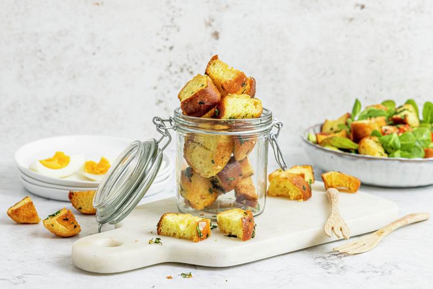 Bruk krutongene i en suppe eller en salat, eller bare ha dem i en boks på kjøkkenet og spis dem når du vil!