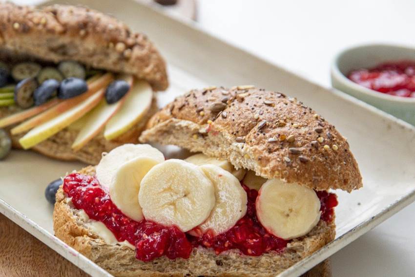 Fiberstykke med banan og syltetøy