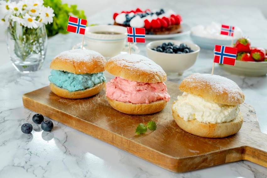 Det er ikke bare til fastelavn bollene som kan fylles med deilig krem. Lag krem i flaggets farger, så har du festklare boller klare på 1-2-3.