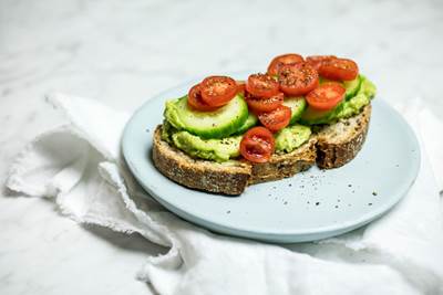 2. Legg cottage cheese på en skive og topp med tomatsalsa og ristede pinjekjerner.