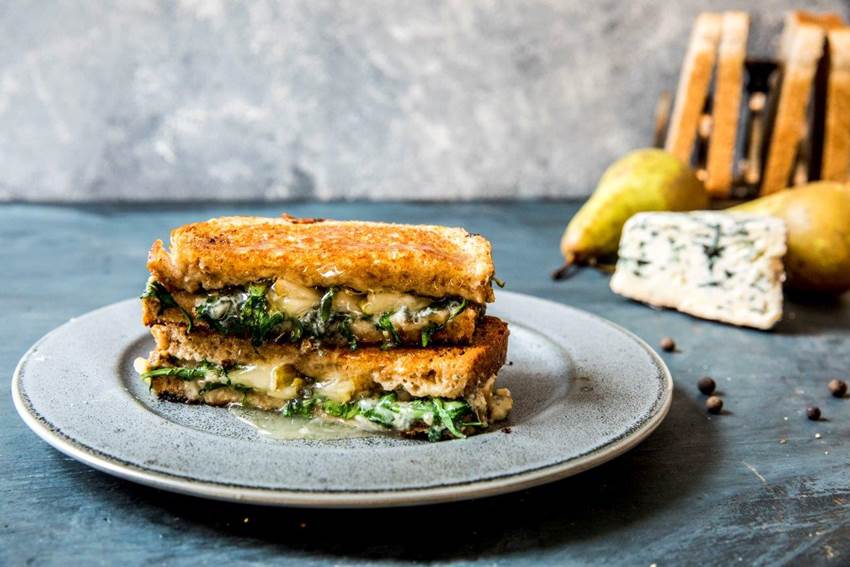 - Legg skivet blåskimmelost på en seng av ruccola.