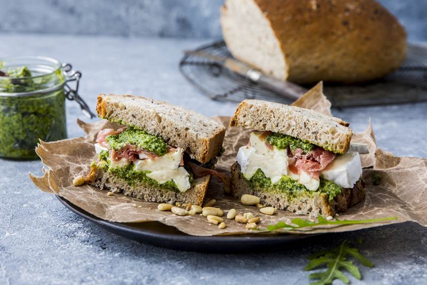 Saftig og god sandwich som er lett å bli glad i. Smaker ypperlig med din egen hjemmelagde pesto!