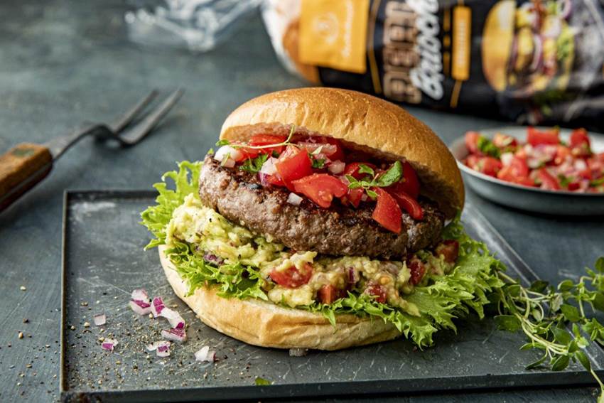 - Start med frisk salat, fortsett med avokadomos og grillet hamburger.